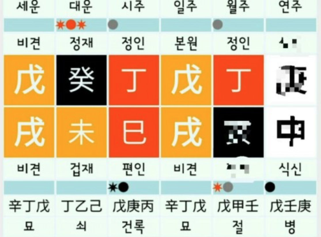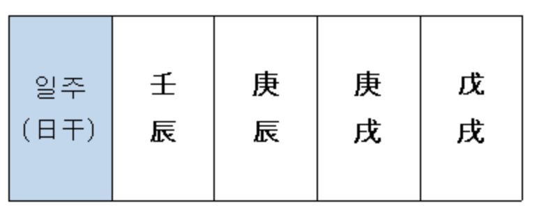 사주 속 '일'기둥에 무술(戊戌)이 포함되어 있는 것이 보이시나요?